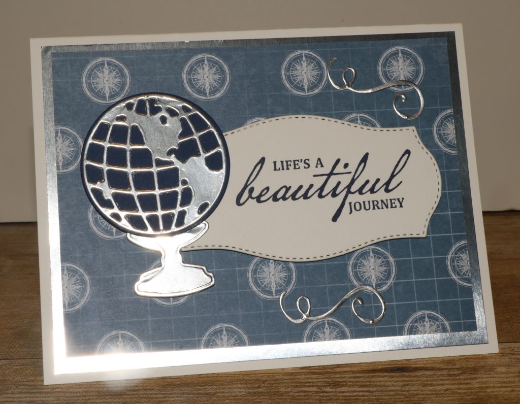 Here is another creation for my husband’s family “fall birthday” celebration.  This one came together so quickly.  If you are looking for an easy way to design a card, the World of Good suite is the answer.  Between the stamp set and the thinlit dies, there are so many options.  The World of Good Specialty Designer Series Paper and the Old World Paper embossing folder make the perfect complements to complete any card.